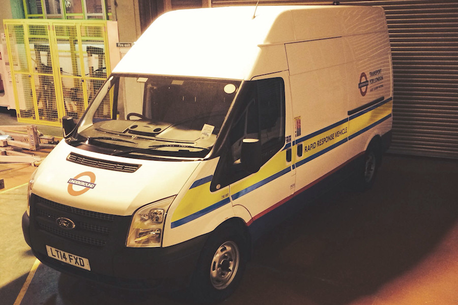 Details: Photographed inside Griffith House on the night of 6th March 2014, Ford Transit van 7818F was possibly on its first day (or night) of service. As well as points for the first 14-reg vehicle, and first 78xx numbered vehicle, contributor SLR has also managed to capture a new livery variant. The basis is LUL standard white/blue/red, combined with emergency style yellow reflective striping (edged in blue) and RAPID RESPONSE VEHICLE lettering. Most notably, the lettering behind the side roundel is Transport for London, rather than London Underground, whilst below that appears to read 'Every Journey Matters'. |