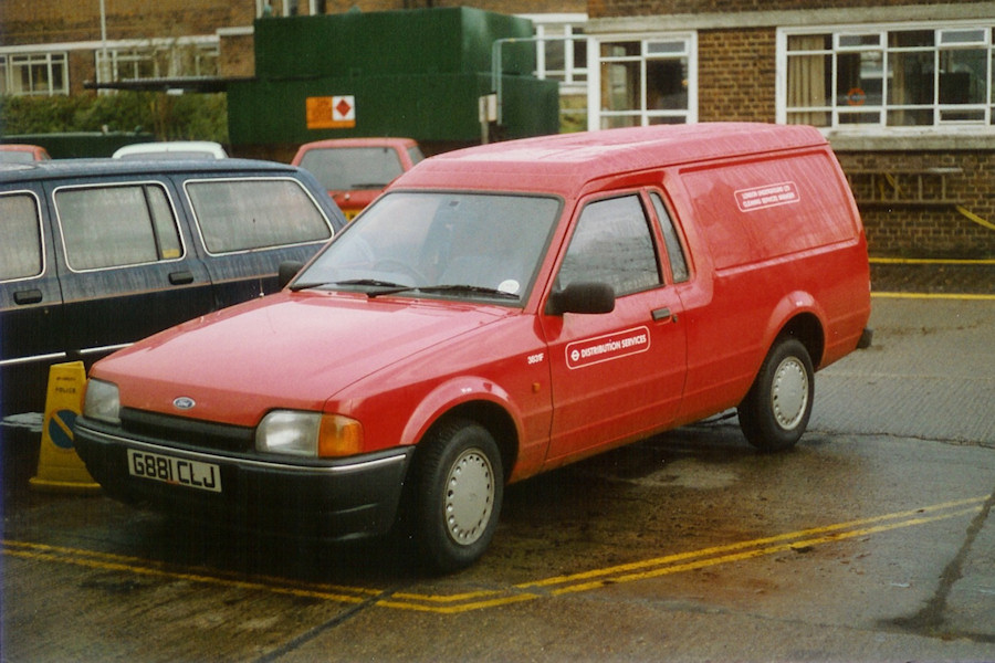 Details: Photographed at Acton Works on 2nd January 1990, Ford Escort van 3831F had been new the previous October. It carried the then-standard Distribution Services label on the doors, but had additional signs for LUL Cleaning Services Manager on the bodysides. |