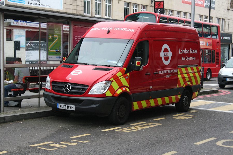 Details: 7289M is by far the most elusive of the current fleet of LBSL Incident Response Units. New in May 2012, it was initially sent to Eltham Bus Station but then virtually disappeared. Just three reports of it were received over the next two years, at a variety of locations. This suggests to me that it is used as a maintenance cover spare. On 12th July 2014 it was photographed at Finsbury Park Bus Station. Parked behind is Renault Kangoo van LV61UCM. Although registered in the same batch as some service vehicles (notably Renault Modus car 7263R LV61UCP), the van is believed to be operated by ISS Facility Services. |