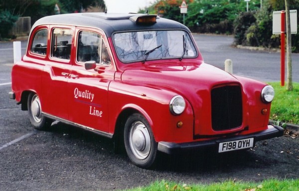 Details: Like several other operators, Epsom Buses saw the usefulness of the FX4 taxi as a crew ferry vehicle. Painted in red livery with Quality Line branding, F198OYH was photographed by Dave Heath on Christmas Eve 2001. |