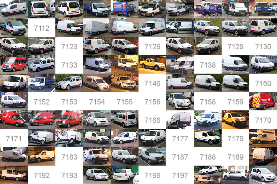 Details: Coverage of vehicles in the number range 7101 to 7200 is also quite high, with photos of 72 different vehicles held on file. Note that there are two vehicles numbered (officially and physically) 7198, one of which was probably meant to be 7193. Confusingly, the number 7193 did appear, on the van that is officially 7163! Although there is a great variety in the types of vehicle, this number range did feature a couple of large blocks of allocations. 7104 to 7130 (apart from 7117 and 7123) were all at Lillie Bridge, while 7166 to 7198 (less 7192 and 7193) were all for the Tube Lines lifts and escalators section. |