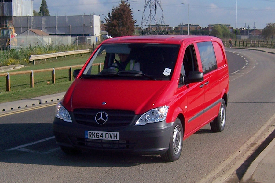Details: About to turn off Ferry Lane into the industrial estate where Rainham Garage is located, RK64OVH is one of at least 2 Mercedes-Benz Vito crew vans added to the Go-Ahead London fleet in September 2014. Unsurprisingly, they carry unmarked red livery. Also seen at Rainham on this date (3rd October 2014) were 2 older Vito crew vans that had appeared on a vehicle auction website in February 2014. It seems that they were withdrawn from sale and returned to use. |