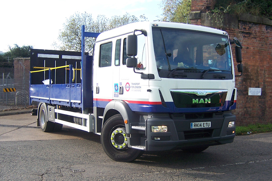 Details: Photographed at the same place at RK14ETT, but a couple of days earlier (10th November 2014), RK14ETU is normally based at Griffith House near Marylebone. Apart from the lack of a light-bar, the two lorries appear to be identical, both featuring the large tail-lift favoured by the Lifts and Escalators section, and all the safety-related additions that are now mandatory. |