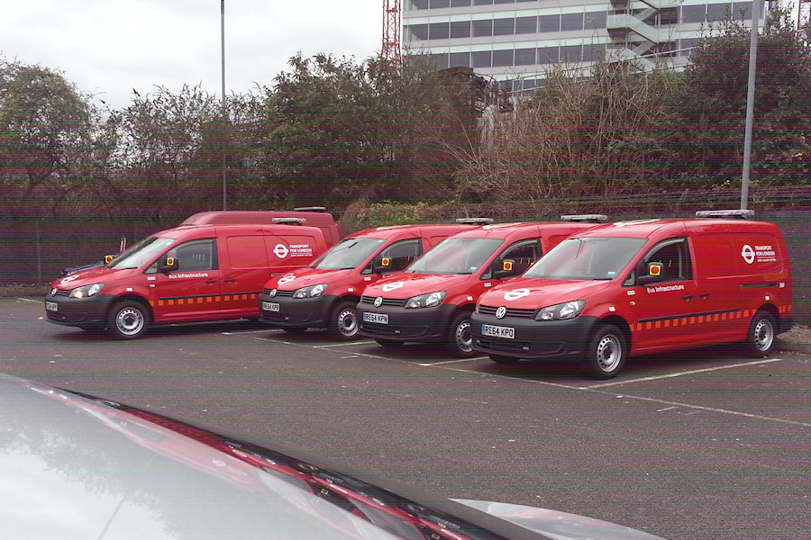 Details: A batch of new Volkswagen Caddy Maxi vans was delivered in December 2014 for use by LBSL Infrastructure Development. Photographed in the car park at Acton Works on 22nd December were four of the new vans, along with one of the mid-height Volkswagen Transporter vans that they seem to be destined to replace. The fleetnumbers of the new vans could not quite be made out, although we now know that the nearest is 7895VW. I'll add links for the others once they are reported. |