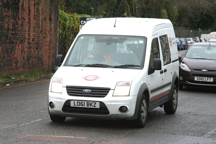 Details: Ford Transit Connect crew van 7275F is based at Hearne House at Acton Town but seems to make fairly frequent visits to Acton Works, as seen here on 17th December 2014. This is only the third Connect crew van for the central fleet (after low-roof 5687F and electric EU61CRZ). The Connect model itself has become rare in recent years and 7275F is one of no more than six remaining. |