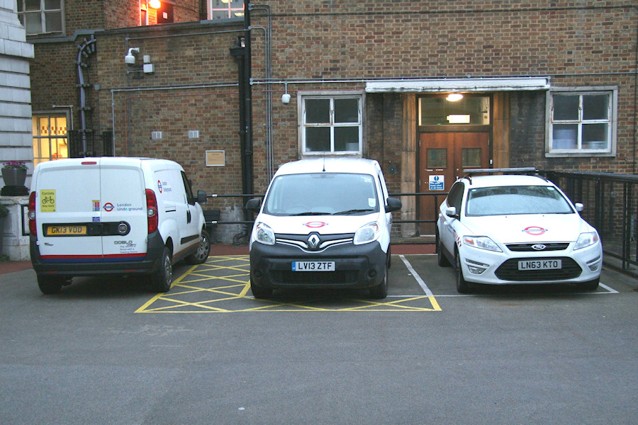 Details: The Baker Street offices are now home to a trio of Mitsubishi L200 4x4s plus Ford Mondeo response car 7742F. One or two mail vans are normally present as well, as in this view taken on 28th January 2015. On the left is Fiat Doblo Maxi 7664FI, one of six added in May 2013. No further examples of this make have been taken since. In the middle is Renault Kangoo Maxi 7658R, now one of the most common models in the central fleet. Mondeo 7742F completes the line-up. |