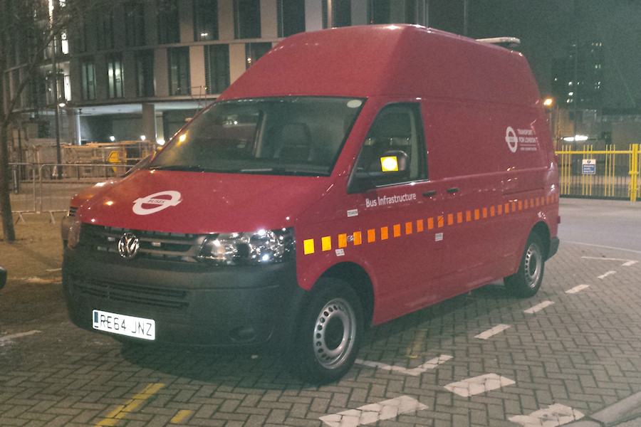 Details: The first of the new LBSL Volkswagen Transporter vans to be seen in use was RE64JNZ, photographed at Stratford Bus Station on 4th February 2015. I had suspected that these would be given fleetnumbers somewhere in the vicinity of the VW Caddy vans recently delivered for LBSL (7891VW to 7902VW). However, it was carrying 7834VW. Four of the previous high-roof Transporters remained in use (6821-6823/6825VW), so perhaps we will now get four (7834-7837VW) to replace them. Adjacent numbers 7833 and 7838 were assigned to vehicles delivered last autumn. Apart from some slight frontal restyling, and the change to TfL lettering, the new van looks very much like the old ones. |