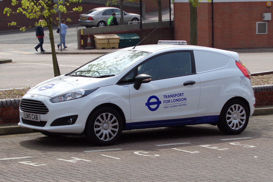 Details: The five TfL-liveried Ford Fiesta vans seen at Acton Works in late March 2015 had gone by mid-April, but we don't yet know where to. The first to be seen 'in the wild' was 7986F, found at Eltham Bus Station on 24th April. The normally resident TfL Toyota Yaris car LL14VOH was notably absent that day, so perhaps the van was covering. The car was back the next day, and the van was gone. Fleetnumbers for the other four vans are still required. |