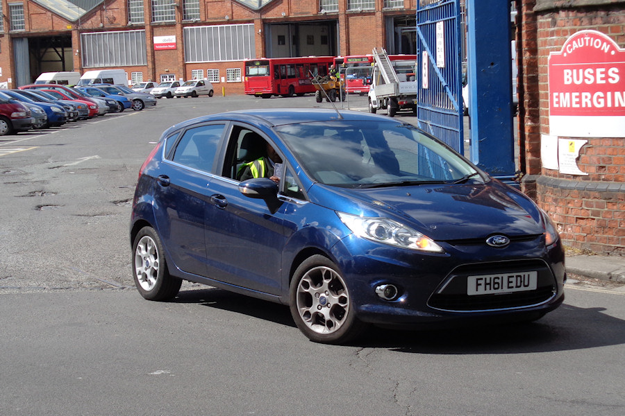 Details: Another 'maybe' at Abellio's Fulwell (AKA Twickenham) garage on 27th April 2015 was Ford Fiesta hatchback FH61EDU. Although unmarked, the vehicle was doing crew ferry work, and is of a type and vintage common in the Abellio fleet. Hopefully it will gain lettering in due course, and any further reports would be appreciated. Five other crew ferry vehicles are visible in the distance. |