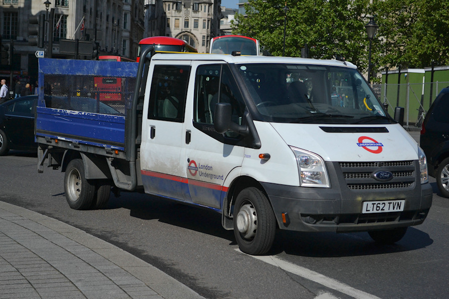 Details: 7507F is a Ford Transit dropside truck that has been reported several times parked at Dagenham East Station. It was not photographed until 15th May 2015, when Keith encountered it on the roundabout at Trafalgar Square. |
