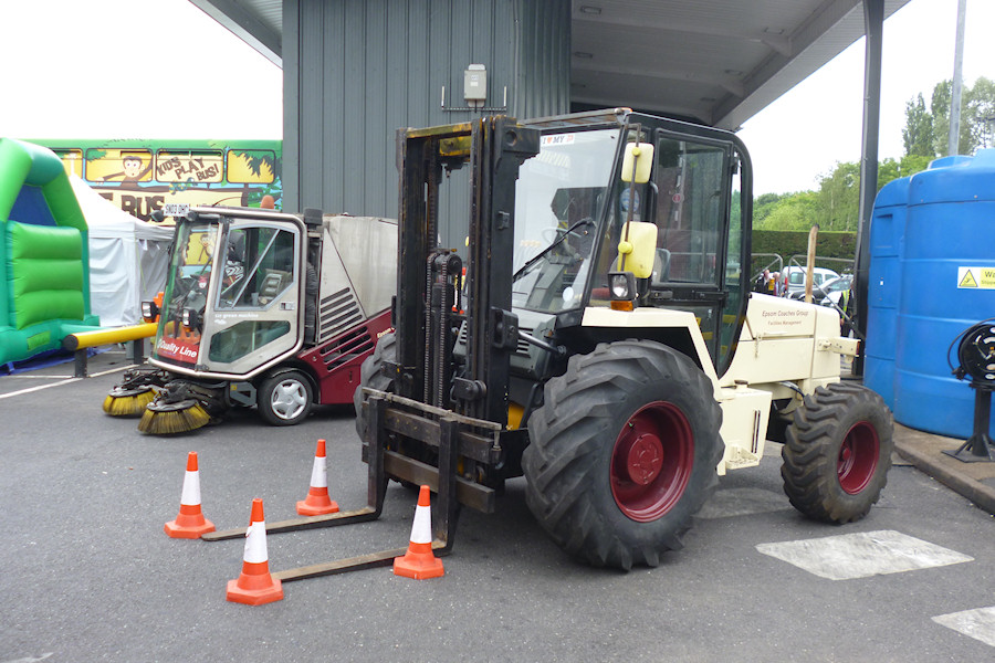 Details: An open day was held at the Epsom Buses garage in Epsom on 20th June 2015, to mark the 95th anniversary of the company. Many of the exhibits were similar to those at the 90th anniversary event in 2010 but on the whole it was an excellent day, with a great deal of effort put in to making it fun and interesting (something that I felt was lacking in some of the YotB open days in 2014). From a service vehicle point of view, this pair was quite interesting. Both carried 'Epsom Coaches Group, Facilities Management' lettering, while the sweeper also had the 'Quality Line' branding. Nearest is J542ONR, a JCB fork-lift truck, beyond is SN03OHC, an Applied Sweepers 525 'Green Machine' sweeper. Although both registered, neither vehicle is currently licensed. In the background is the 'Jungle Bus', former Centrewest Volvo Olympian V8, which my daughter says was great fun! |