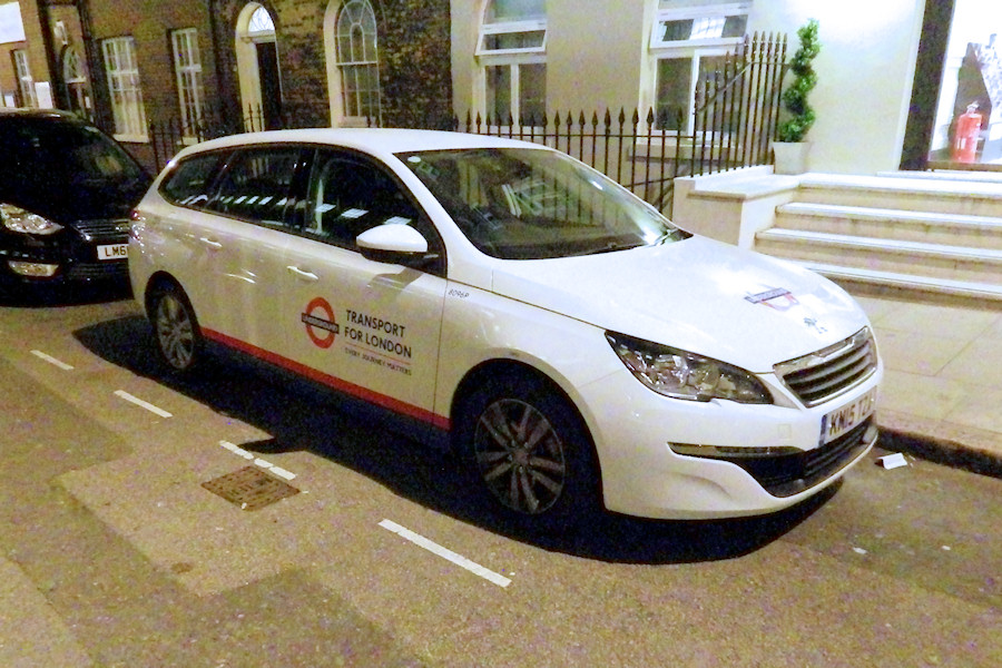 Details: Another Peugeot 308 estate photographed on the night of 30th September 2015 was 8096P parked near King's Cross Station. Ray did well with a hand-held 1/6th of a second exposure. |
