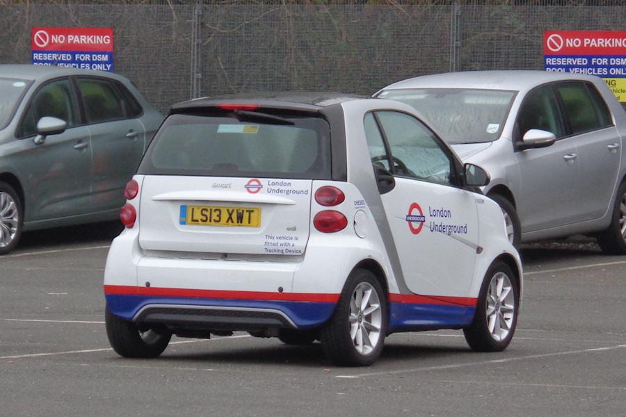 Details: About 20 examples of the diminutive Smart Fortwo car were added to the central fleet between 2005 and 2013 but there have been no more since. Apart from a batch at Lillie Bridge, most have been elusive, and in any case most have now been withdrawn. 7625SM was the penultimate addition and was only seen once 'at work'. On 12th March 2016 it was in the car park at Acton Works, perhaps as a prelude to disposal. |