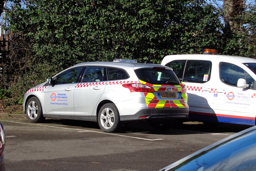 Details: In early 2016 a number of existing service vehicles were transformed into Incident Response Vehicles, usually by the addition of battenburg striping, suitable lettering and light-bars. This was in connection with a change in regulations that now permits such vehicles to use bus lanes when attending to incidents. Among the vehicles involved were the four Citroen Berlingo estate cars allocated to the Central line, such as 7511C seen on the right in this view of Loughton Station car park taken on 7th March 2016. The nearer vehicle has been similarly treated but started out as an un-marked car. Ford Focus estate LL13XNS was new in July 2013 and has now been given the fleetnumber 8171F. This sets it almost 500 numbers higher than the 9 other Focus estates with registrations in the LL13X-- range. |