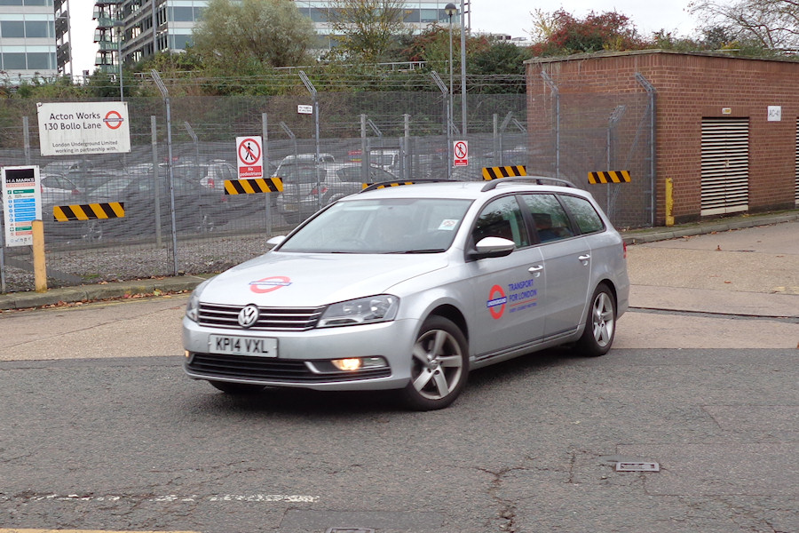 Details: Another rarely seen vehicle is Volkswagen Passat estate car KP14VXL. As with similar KR11XWK, this car has a mainly silver livery and no apparent fleetnumber. On 9th November 2015 it was caught leaving Acton Works. |