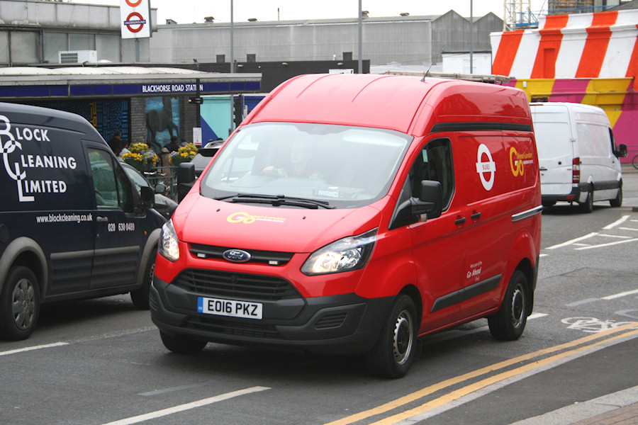 Details: Seen passing Blackhorse Road on 3rd June 2016, EO16PKZ is a new Ford Transit Custom van for Go-Ahead London, used by its London General subsidiary from Northumberland Park garage. Go-Ahead becomes the fourth London bus company to take the Transit Custom model (after Stagecoach, London United and Tower Transit) and the new van has replaced Transit Mk7 EF10UUX. |