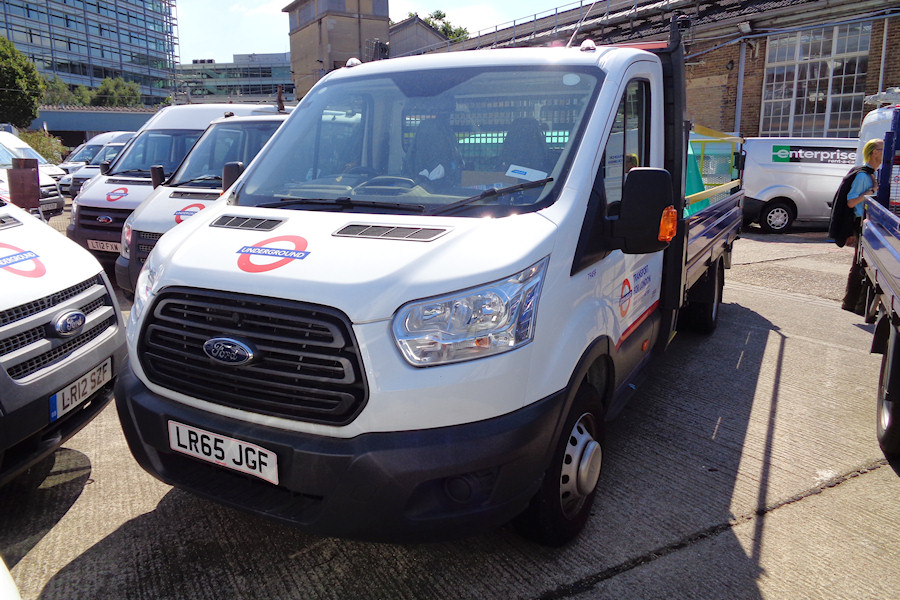 Details: This Ford Transit Mk8 dropside truck seen at Acton Works on 30th August 2016 looked brand new but had in fact been first registered exactly 11 months previously. Numbered 7949F, it presumably joined the fleet very soon afterwards but has managed to avoid being seen until now. Note that it has a tail-lift but no crew-cab. |