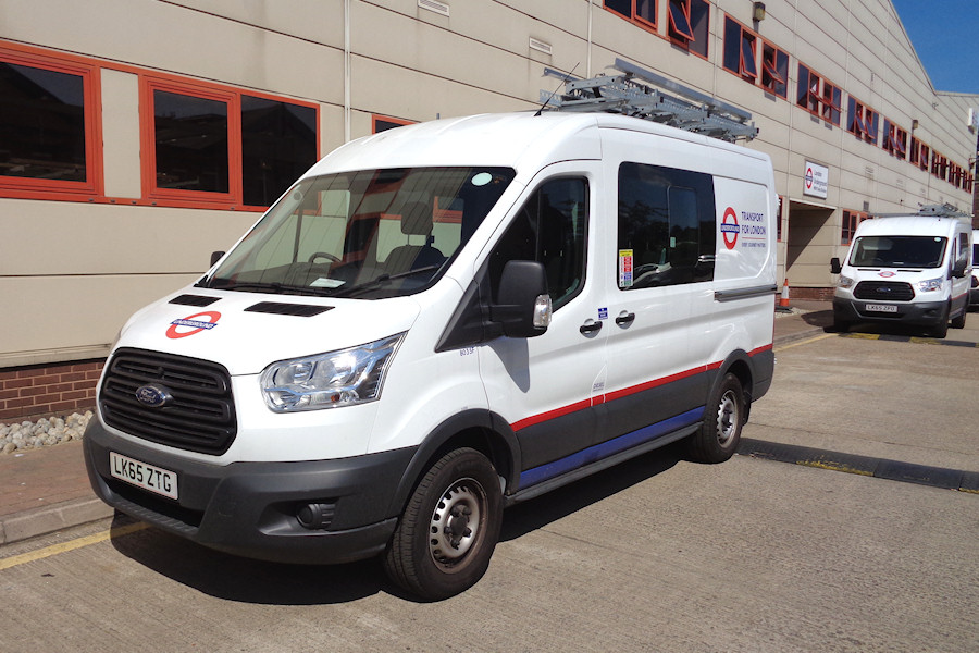 Details: Two more crew vans from the 8024F to 8037F batch seen at Acton Works on 30th August 2016 were 8035F (nearest) and 8029F (behind). These vans seem to park in various places around the works and the department/s that operate them are not known. |