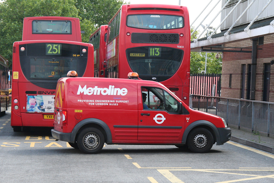 Details: Derek photographed a couple of Metroline's Ford Transit Connect vans at Edgware Bus Station on 10th August 2016, although curiously neither was from the adjoining garage. AV62YTG started life as the Potters Bar engineering van in early 2013. Replaced by newer AX14KYZ in 2014 it moved to Cricklewood, although it was listed as being for sale at British Car Auctions in July 2015. This evidently did not take place, and the van remains in use, now with W allocation code. |