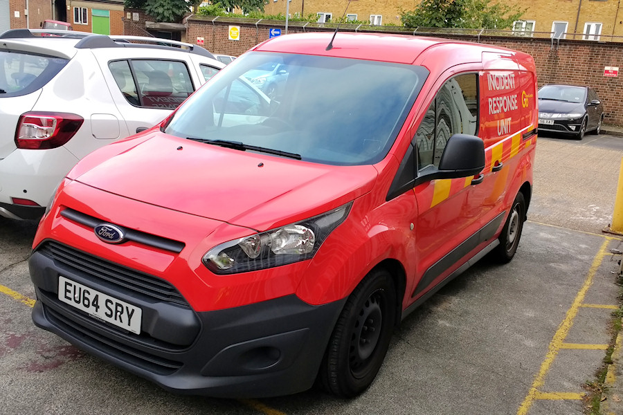 Details: Ford Transit Connect Mk2 van EU64SRY started life in unmarked red livery at Orpington garage. Sometime in spring 2016 it was given side chevrons and large Incident Response Unit lettering, along with a Go-Ahead London logo. In its new guise it was photographed at Stockwell Garage on 26th September 2016. Just visible in the background is Leyland DAF lorry chassis J263FYA. An open day is to be held at Stockwell on Saturday 15th October 2016. |