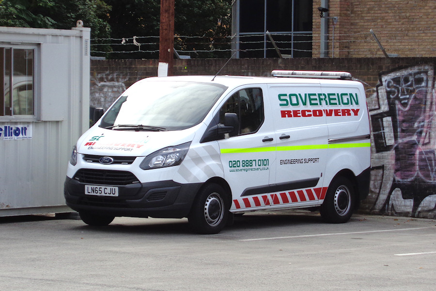 Details: Sovereign Recovery used to operate several Ford Transit vans but in recent years has preferred to take Mercedes-Benz, Volkswagen or Iveco products. At least one example of the new Transit Custom model was added at the end of 2015, this being LN65CJU. It can regularly be found parked in the new Lewisham Bus Station (which is really just a bus stand and is across the railway from the previous bus station), as here on 26th September 2016. |