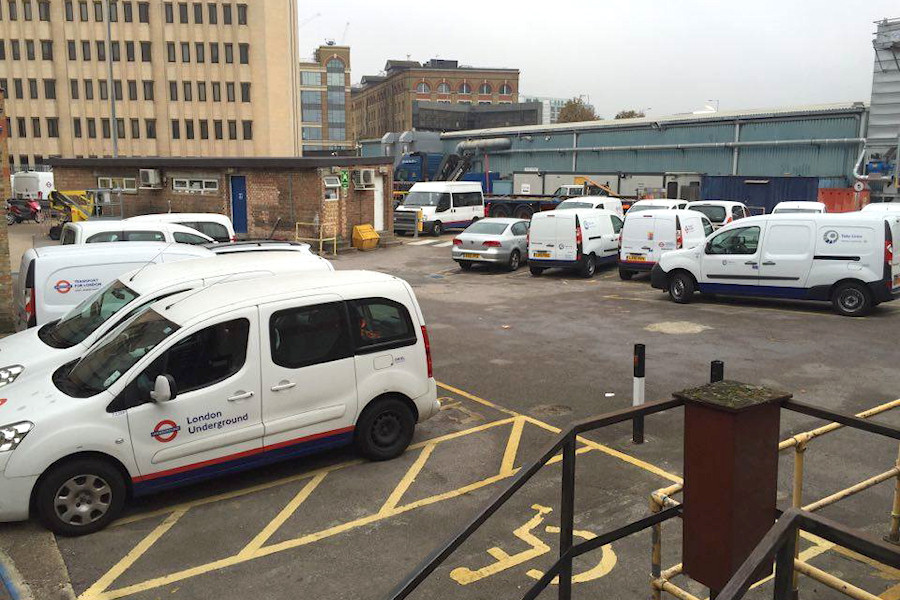 Details: A new contributor (who prefers to remain anonymous) has sent several photos taken at Lillie Bridge and Hainault depots. Seen here is what I call the 'car yard' at Lillie Bridge on 7th November 2016. I reckon there are 18 service vehicles visible in this photograph, the majority of which are Peugeot Partner cars or Renault Kangoo vans. Nearest the camera is Peugeot 7228P, from the batch of ten (7221P to 7230P) new in late 2011. Note the missing wheeltrim. This is a recurring feature in today's set of photos. |