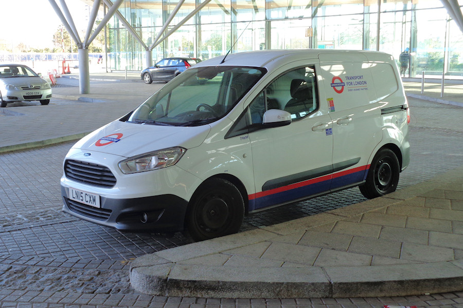 Details: Ten Ford Transit Courier vans were delivered for the Lifts and Escalators fleet in early 2015, to be followed by a dozen examples of the Kombi crew van variant over the next year. Van 7969F was found at North Greenwich Station on 28th November 2016. The vans were to the 'Trend' specification, with body-coloured mirrors and door handles and smart wheeltrims but this example seems to have lost the latter. |