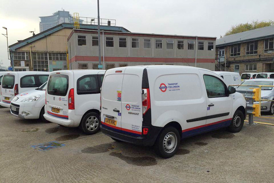 Details: New in April 2015, a batch of 13 Renault Kangoo vans was given fleetnumbers 8006R to 8018R and allocated to Lillie Bridge. Seen there on 7th November 2016 was 8007R. Tube Lines liveried Kangoo Maxi van 7361R is visible beyond on the left, while no fewer than six Peugeot Partner Tepee cars can also be seen. All are believed to be from the batch of 10 new in late 2011 (7221P to 7230P). |