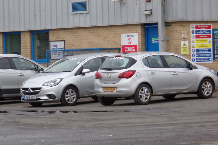 Details: Arriva's Edmonton Garage has always needed a sizeable fleet of crew ferry vehicles, due to its location some distance from the nearest bus routes. Vauxhall Corsas have been the favoured type for the past few years and most of the batch acquired in early 2014 with fleetnumbers 201 to 214 are based here. Seen at the garage on 24th November 2016 were two more recent additions, both being silver 5-door Vauxhall Corsa cars with Arriva lettering in the windscreens. HV65OBD dates from December 2015 and was part of a batch that went otherwise to Barking (Dagenham). It now has fleetnumber 217. FL16SNX was new in March 2016 along with a couple based at Dartford. |