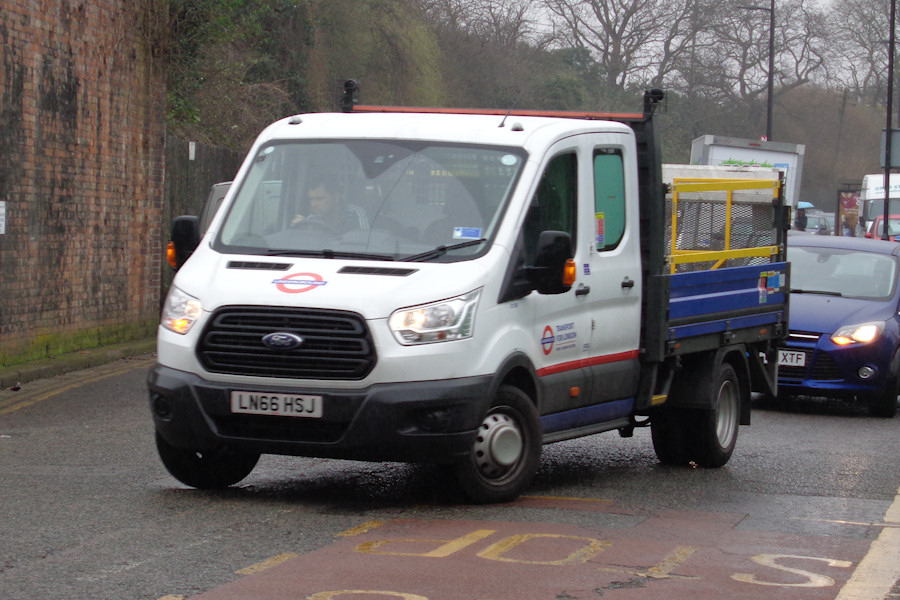 Details: On a murky 10th March 2017, Ford Transit dropside truck 8118F was caught entering Acton Works. New in autumn 2016, it is most likely based at Stratford Market Depot. |