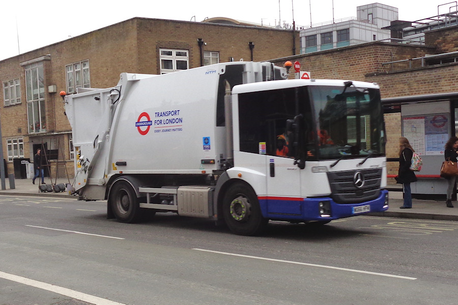 Details: Seven new dustcarts have been delivered over the past few months, and I would be very surprised if there will be any more for a while. WO66HFM is identical to WO66HFL, being a 2-axle Mercedes-Benz Econic 1830 with NTM bodywork. It was caught passing White City Station on 10th March 2017. |