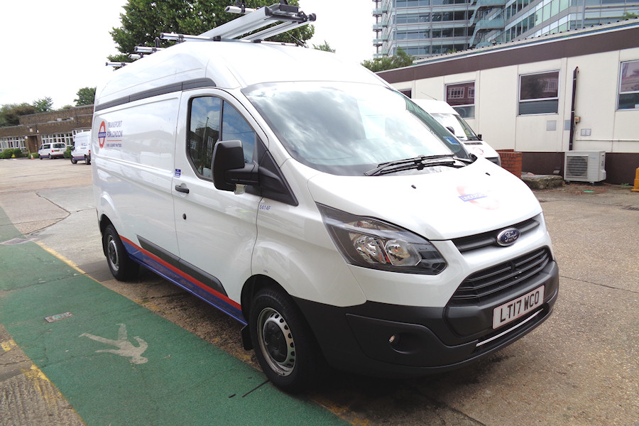 Details: The Ford Transit Custom model is becoming increasingly common in the central fleet, most examples being short-wheelbase low-roof. Shown here at Acton Works on 27th July 2017 is one of the larger variants, 8414F being a medium-wheelbase high-roof van in LUL livery. The length designations are shared with the larger Mk8 Transit and it should be noted that there is no 'long-wheelbase' Transit Custom. In terms of recognition, the height is fairly obvious. For the length, look at whether the black side trim reaches to the rear wheelarch pressing (SWB) or not (MWB). |