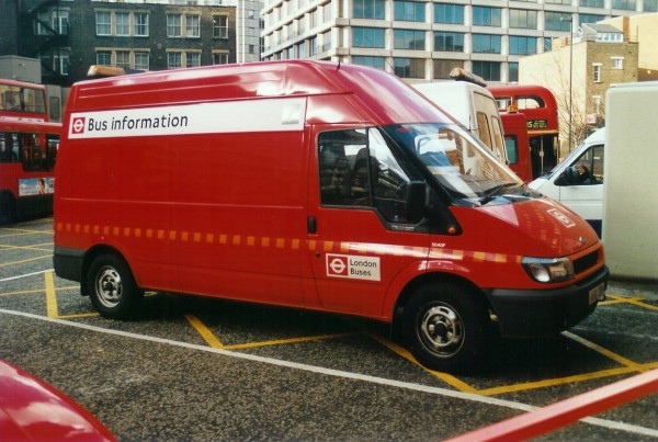 Details: This vehicle hardly needs an introduction! It is of course 5040F (X188GBH), seen at its usual resting place in Aldgate bus station on 9th March 2002. |