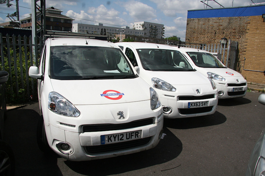 Details: A stranger in the camp. The four Peugeot Partner Tepee cars allocated to Barking (Wakering Road) have been well covered on LTSV, usually at their home base. On 24th May 2017, 7450P was there, with 7451P at the back. Parked in between though was unmarked white car KX63SVF. I would guess that this was a cover vehicle while one of the allocation (either 7449P or 7452P) was away for maintenance. A recent change also visible in this photograph is the erection of overhead wiring on the adjacent railway track, this being the Gospel Oak platform. |
