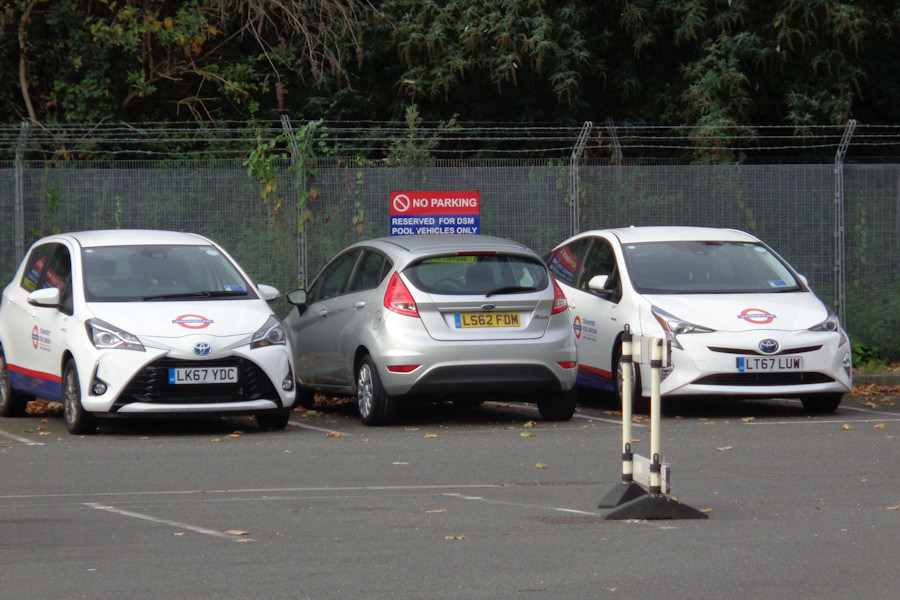 Details: Another car park shot, and another triple, from Ray. Seen at Acton Works on 14th October 2017 were Toyota Yaris LK67YDC (fleetnumber not yet known), unmarked Ford Fiesta hatchback LS62FDM and Toyota Prius 8550T. The two Toyota cars had only recently been delivered while the Ford was no doubt on the way out. |