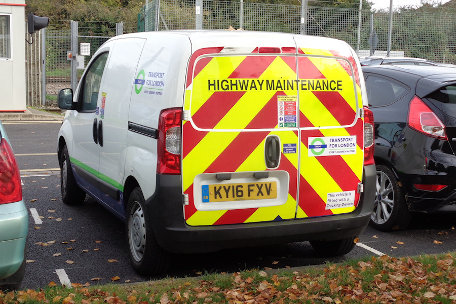 Details: We got hold of an updated list of central fleet vehicles in May 2017 and I was rather surprised to see two Peugeot Bippers included. TfL and Tube Lines had used this diminutive type before, the last being withdrawn in 2015. Of the two new vans, 8180P was soon tracked down to Lillie Bridge, but the details of 8186P remained unknown until Ray found it on 1st November 2017. It was parked at Therapia Lane tram depot and carried the white/blue/green livery of that operation. As an aside, Tramlink also has at least one new Ford Transit dropside truck, but details have not yet been obtained. |
