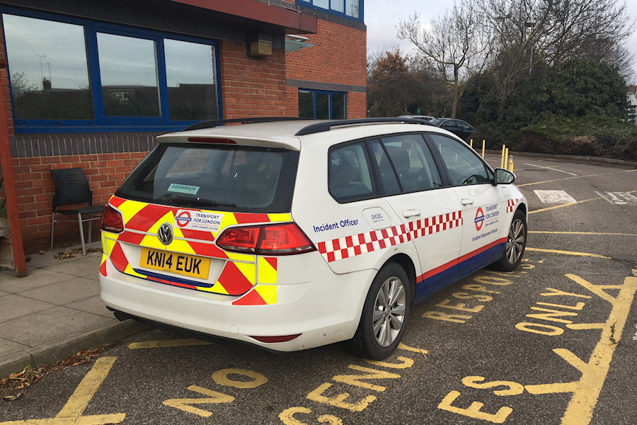 Details: It is very useful to have a couple of 'inside' contributors, enabling us to show vehicles that have otherwise avoided being photographed. This view, taken on 2nd December 2017, shows Volkswagen Golf estate car 7798VW at Arnos Grove depot. New in spring 2014, this is (as far as we know) the only Golf in Incident Response Vehicle livery, and it replaced un-numbered Vauxhall Zafira LT58CNY. Note that the lettering, as seems normal on such vehicles, suggests that the Incident Officer is kept in the back! Also, unlike most incident cars, this one has no light-bar. Arnos Grove is a slightly frustrating location. The response car parks in front of the office block and can be seen from passing trains. I have photographed it but the results were not very good. The other vehicles here are normally kept in a yard at the end of the building, and can be seen from a public road that runs past. However, double fences make photography almost impossible. Luckily Kevin photographed all the SVs present and there are more photos coming up soon... |