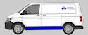 Details: This van was found in Slough Bus Station on 10th October 2017 and seems likely to be in use with First Berkshire. As with other recent vans here, it has unmarked red livery apart from a reflective safety stripe. VO64WCK is a short-wheelbase, low-roof Volkswagen Transporter. |
