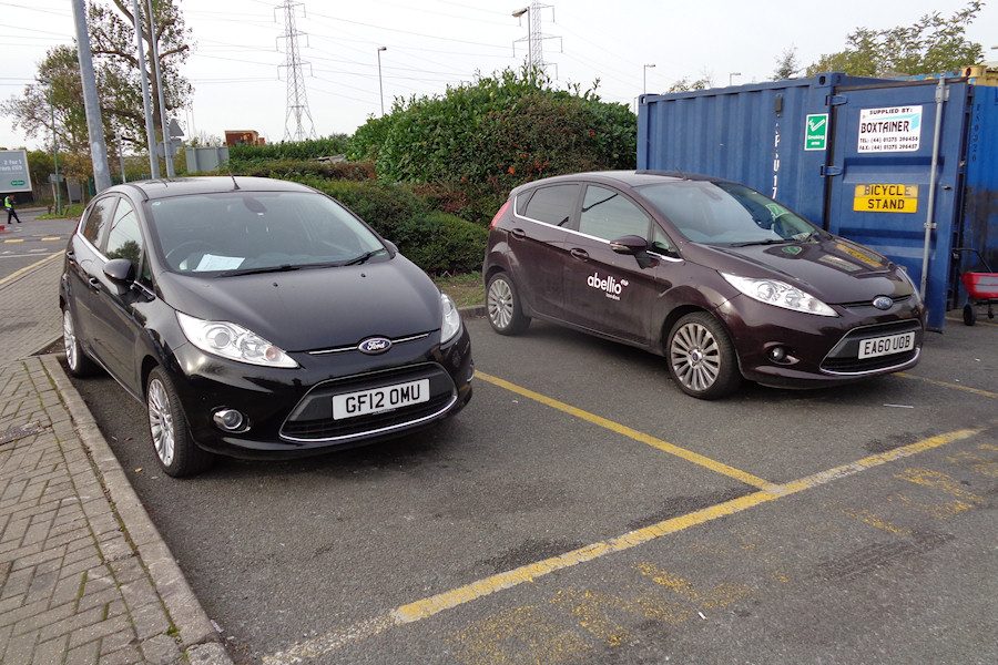 Details: No prizes for guessing the location of this photo taken on 1st November 2017. There aren't many clues but it has been shown on LTSV several times before. On show this time were a pair of Ford Fiesta hatchback cars, pretty much the standard vehicle for Abellio over the past few years. All were bought second-hand and the interest comes from variety in the base colour and how much lettering gets applied. GF12OMU (on the left) is black and appears to be anonymous, while EA60UOB is brown (or 'red' to the DVLA!) and has Abellio London logos. Neither car carries a fleetnumber but they are allocated 6802 and 6765 respectively. |
