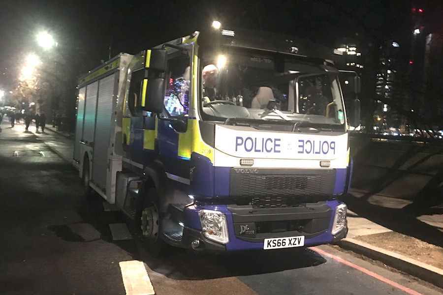 Details: This photo was taken in the last hour of 2017 and shows Emergency Response Unit Volvo rescue tender 2609 parked on standby on Millbank. Since being photographed at Wimbledon in November, this vehicle has regained a full set of Police liveried panels. |
