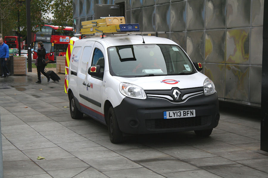 Details: Very few of LUL's numerous Renault Kangoo vans have roof-racks, although conversely, most of those used by London Overground and Tramlink do. LUL 7713R is one of two added to stock in autumn 2013 for use by the power supply division, then freshly taken over from UK Power Networks. On 14th November 2017 it was found parked on what was the northern roundabout at the Elephant & Castle, which has now been remodelled to improve walking routes and confuse drivers. This van has been parked here for at least two days a week over the past few months. The reason I know this is that I can see it from my (temporary) office desk! |