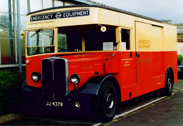Details: Four of the AEC Regent Breakdown Tenders converted from STL buses in 1950 have survived into preservation. Shown here is 832J (JJ4379), rebuilt from STL162, and carrying red and cream livery. |