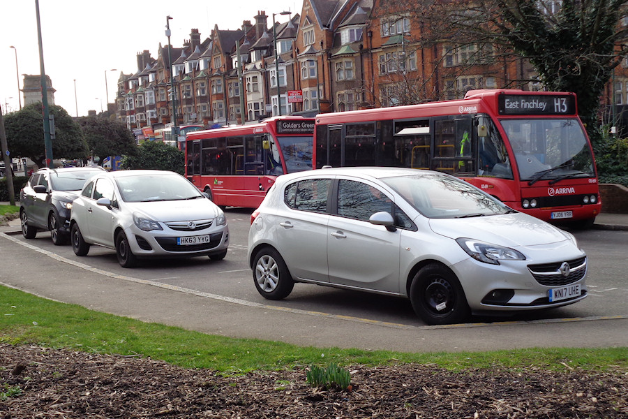 Details: The small layby alongside the bus station in Golders Green is the terminus point for routes H2 and H3 (plus associated, school-day route 631). These are currently operated by Arriva from Garston, and crew ferry cars from there are also often present. On 8th February 2018 Ray found a pair of Vauxhall Corsa cars. Five-door WN17UHE was new in April 2017 but had not previously been reported. Three-door HK63YYG behind was part of a batch new to Edmonton garage in 2014, transferring to Garston in 2016. The Golders Green local routes have been operated by Optare Solo buses for several years, first by Metroline then by Arriva the Shires. The Shires operation was transferred to Arriva London in 2016 and the routes are being lost on re-tendering in June this year. The new operator will be Metroline, with Optare Solos! I wonder if the passengers will even notice.... |