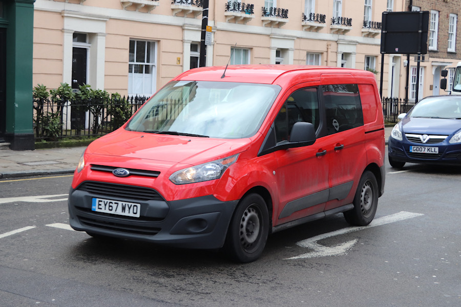 Details: Carrying a registration number very similar to that in the previous photo, EY67WYO is also a Go-Ahead vehicle but a much smaller one. To serve the recently opened bus garage at Morden Wharf (North Greenwich), two Ford Transit Connect crew vans were acquired in autumn 2017. As seen in this view taken at Greenwich on 20th February 2018, no lettering is carried. |