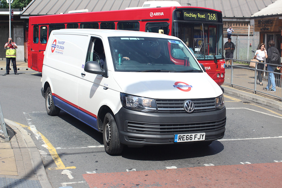 Details: The fantastic weather in recent weeks has resulted in some great photos being sent in. A good example is this one of Volkswagen Transporter van 8221VW paying a visit to Golders Green Bus Station on 6th June 2018. New in late 2016, this long-wheelbase van is based at Neasden Depot, being kept near the control centre. Behind the van is one of Arriva's DWL buses (originally with Arriva Shires but now Arriva London), the 'classic' Wright single-deck design now being rather rare. Also visible is a Bus Station Controller who seemed to be filming all coaches and other vehicles entering the station. |