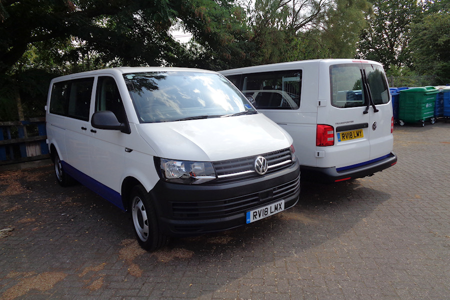 Details: Along with nine VW Caddy Maxi crew vans (and already-illustrated Toyota Prius car 8653T) the new vehicles for the Elizabeth Line include a pair of VW Transporter minibuses. RV18LMX and RV18LMY were seen in the lorry yard at Acton Works on 26th July 2018, waiting their turn to be liveried. The full fleet of 12 vehicles were finished in white/blue/purple livery and were handed over on 3rd August 2018. We're not yet sure where they are now based.... |