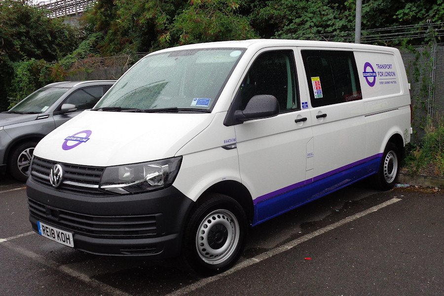 Details: Having learned that the Elizabeth Line was getting an allocation of 12 service vehicles, one further example was found at Acton Works on 9th August 2018, a week after the initial fleet was handed-over. Photographed in the car park in full white/blue/purple livery, 8643VW is a long-wheelbase Volkswagen Transporter crew van. |