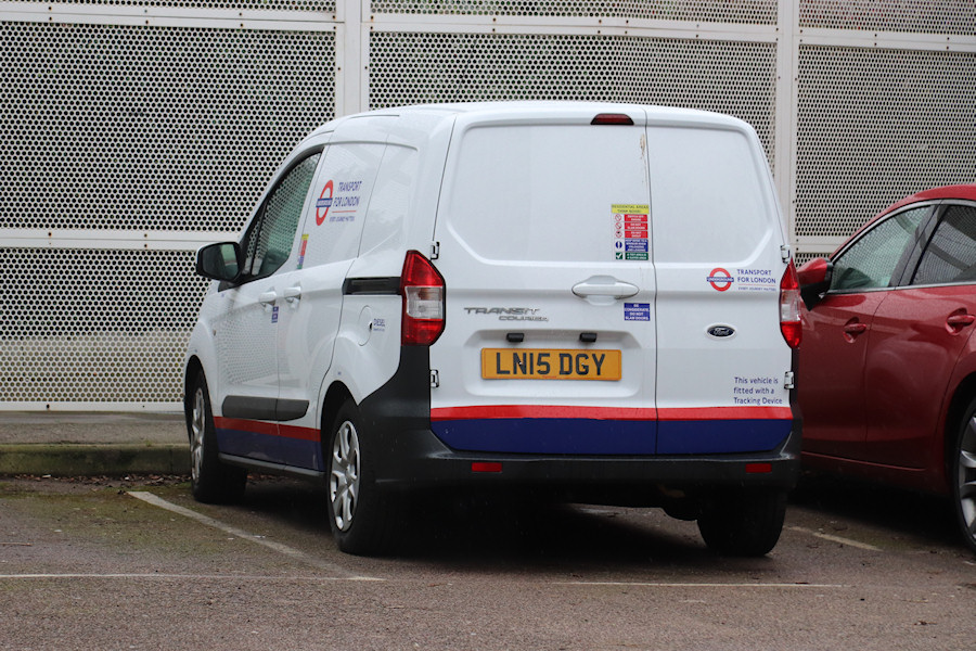 Details: Twenty-four examples of the Ford Transit Courier model introduced in 2014 have so far been added to the leased fleet, the largest block being ten for the Lifts and Escalators section based at Frank Pick House at Acton. One of these, 7968F, was found parked at nearby Bollo House on 10th February 2018. It may have been awaiting entry to the adjoining Smallbills Garage for maintenance. |