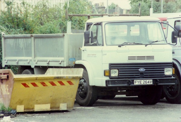 Details: The last two Ford D-series lorries bought by London Transport were both Tippers. 2264F (FYE264V) was based on the D1110 model and arrived in June 1980. It differed from other tippers in having an unpainted body, as well as featuring the black cab window surround applied to some late D-series lorries. Photographed at the Chiswick Works open day on 11th August 1985, 2264F lasted until July 1990. |
