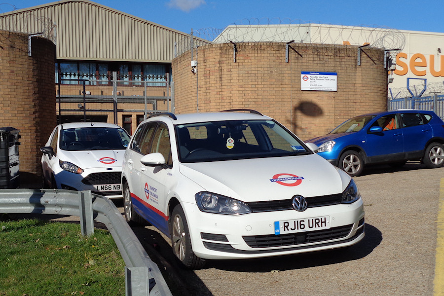 Details: LUL currently makes use of about 20 liveried Volkswagen Golf cars, most of which are estates but all of which are quite rare. 8196VW is from a batch of 5 estates new in June 2016 and had only been seen out at night until Ray found it parked at Acton Town on 29th October 2018. Vehicles from Stratford Market Depot have been seen visiting here before. Parked behind is one of the more normal residents, Ford Fiesta van 8317F. |